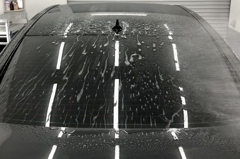 古いコーティング剤を剥ぐ為、機械とコンパウンドで磨き、その後に、当社おすすめの超高撥水コーティングを施工しました。